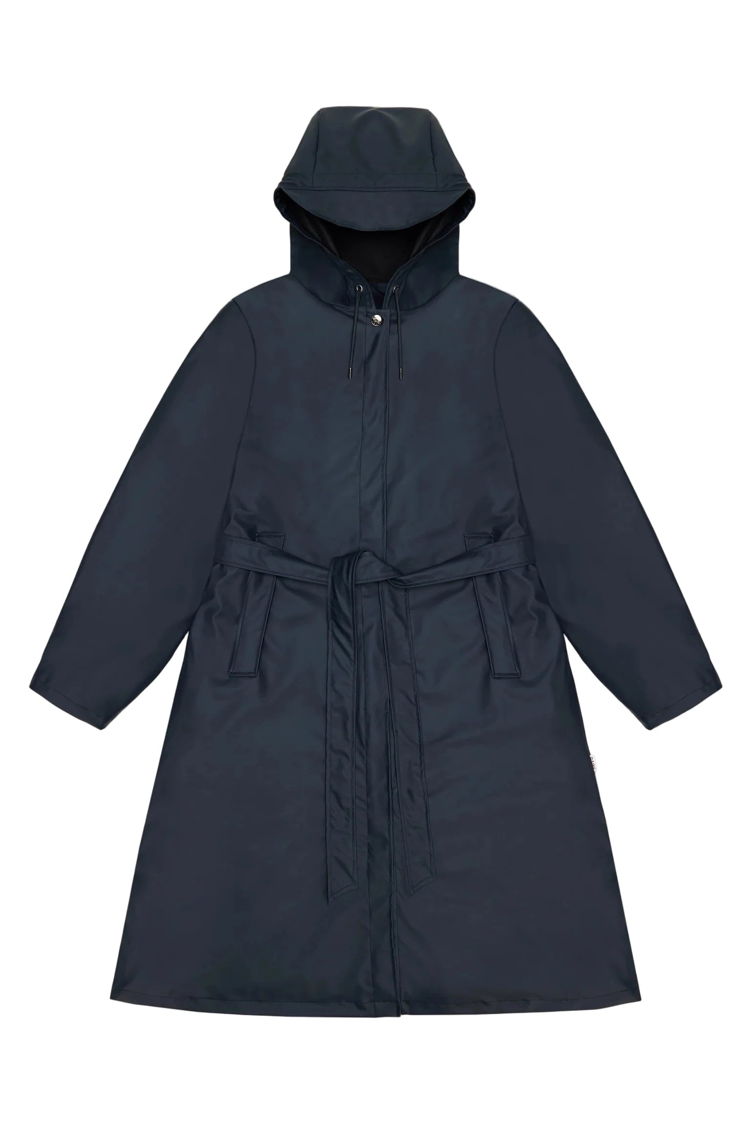 De A-Line Longer W Jacket van Rains is een stijlvolle, functionele regenjas voor dames met een elegante A-lijn silhouet. De ceintuur accentueert de taille op subtiele wijze, waardoor deze jas niet alleen praktisch is, maar ook een vrouwelijke uitsttraling heeft.