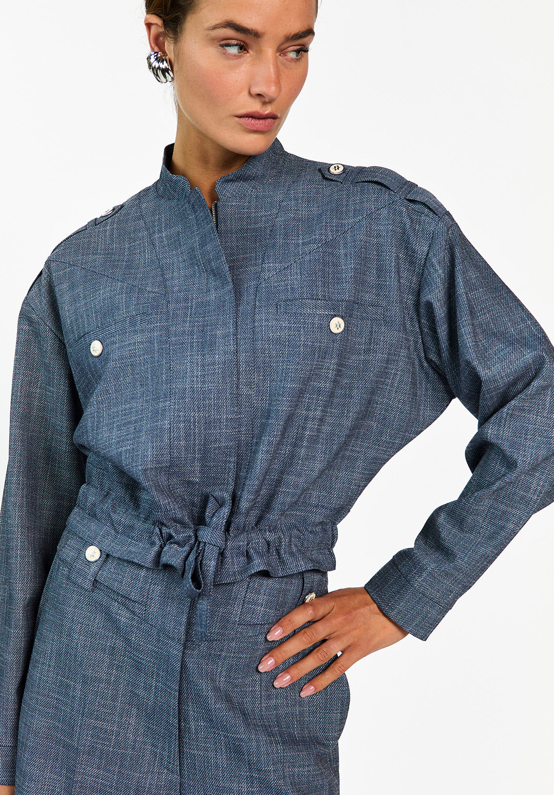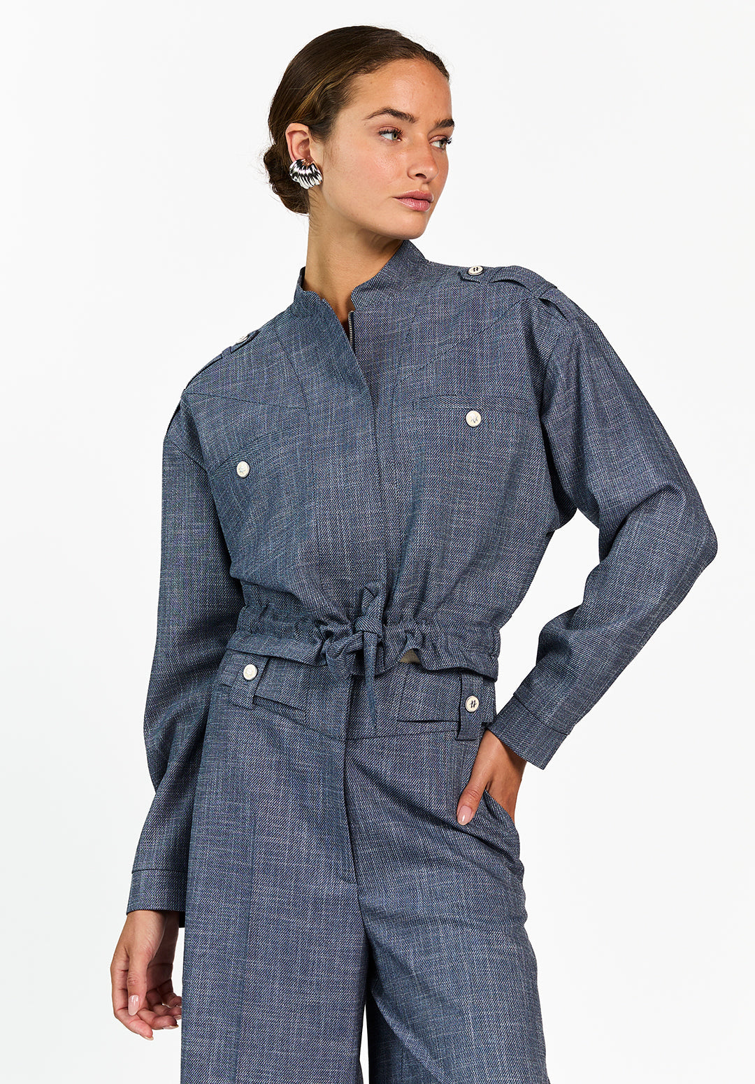 De Lauryn Jacket van Aaiko is een luchtig jacket met een rechte fit en een clean silhouet. Voorzien van een trekkoord in de taille, knoopdetails op de schouders en opgestikte zakken met knopen. Gemaakt van een soepel vallende stof met subtiele structuur. Combineer met de bijpassende Nore broek.